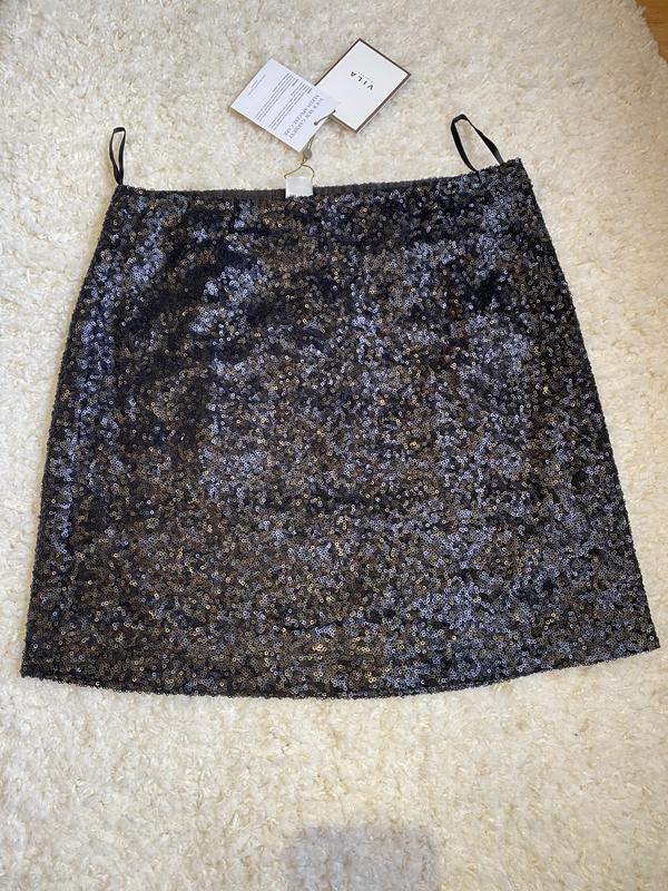 Юбка в паетках, чёрного цвета,состояние новое, брэнда Vila, размер S-М, от 76см, об 96см.