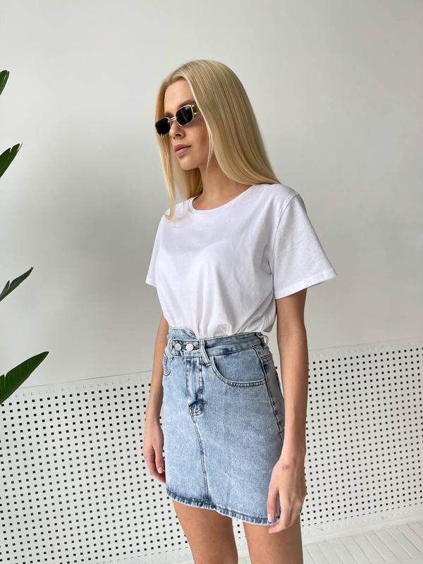 Джинсовая юбка на двух пуговицах голубая