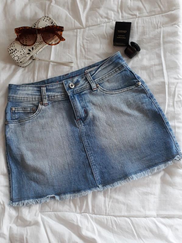 Модная джинсовая юбка с бахромой по низу. Длина-35см. От-75см. Об-93см.