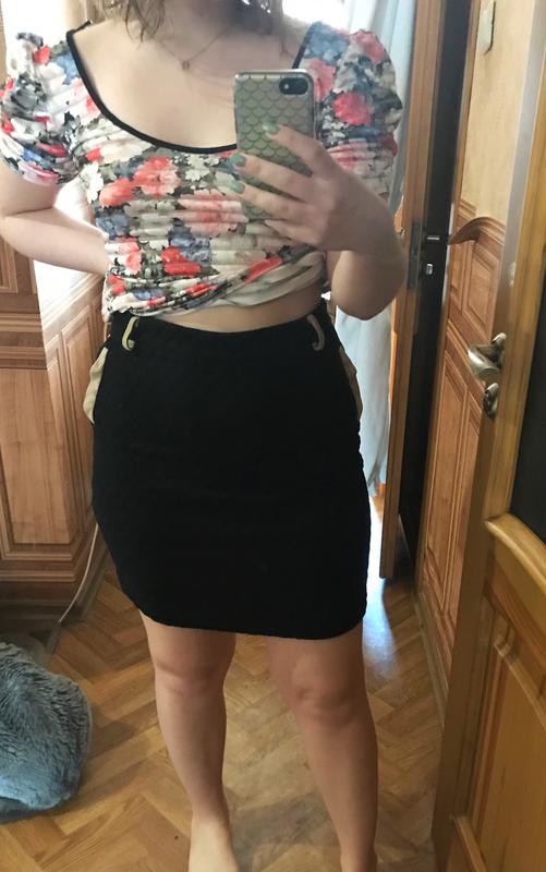 Юбка мягка и приятная к телу . Все замеры есть на фото ( тянется )