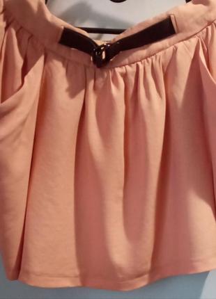Новая мини юбка. Длина 39см, талия 36 до 39см, на подкладке. Юбка на резинке с вшитым регулируемыми ремешком, с зади на змейке. Цвет персик, в составе полиэстер, вискоза.