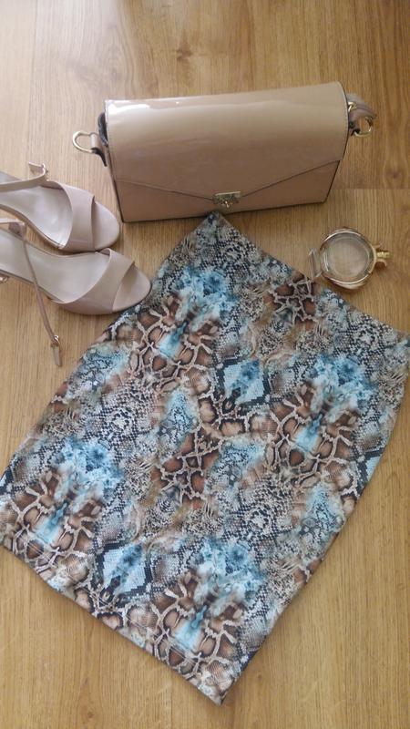 Классная летняя юбка до колен! Легкая, облегающая. Змеиный принт!