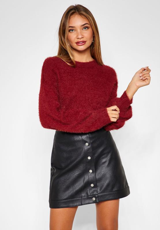 Спідниця зі штучної шкіри відмінної якості А-силует на заклепках спереду бренду TOPSHOP •дві кишені •висока посадка •стан нової речі