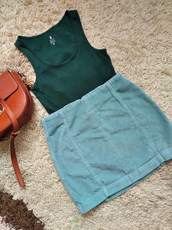 Розмір S/M, ніжного м'ятного кольору. довжина спереду 36,5см довжина ззаду 38см ПО талії 36 см ПО бедер 46,5см Тканина при потребі добре тягнеться