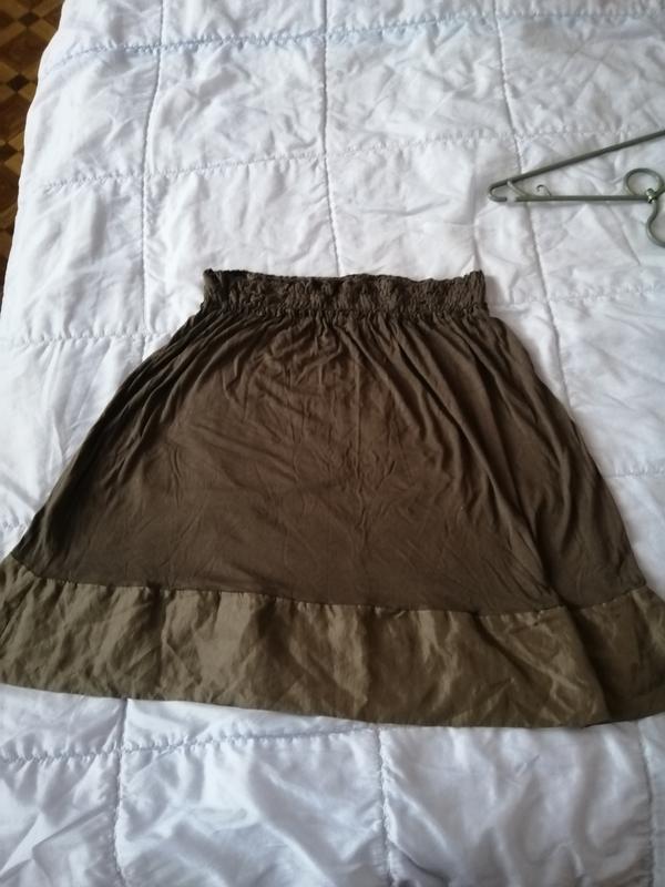 Літня спідниця. Пояс на резинці. Спідниця коричневого кольору з трикотажу, по низу широка смуга шовку. Додаткове фото і заміри за запитом.