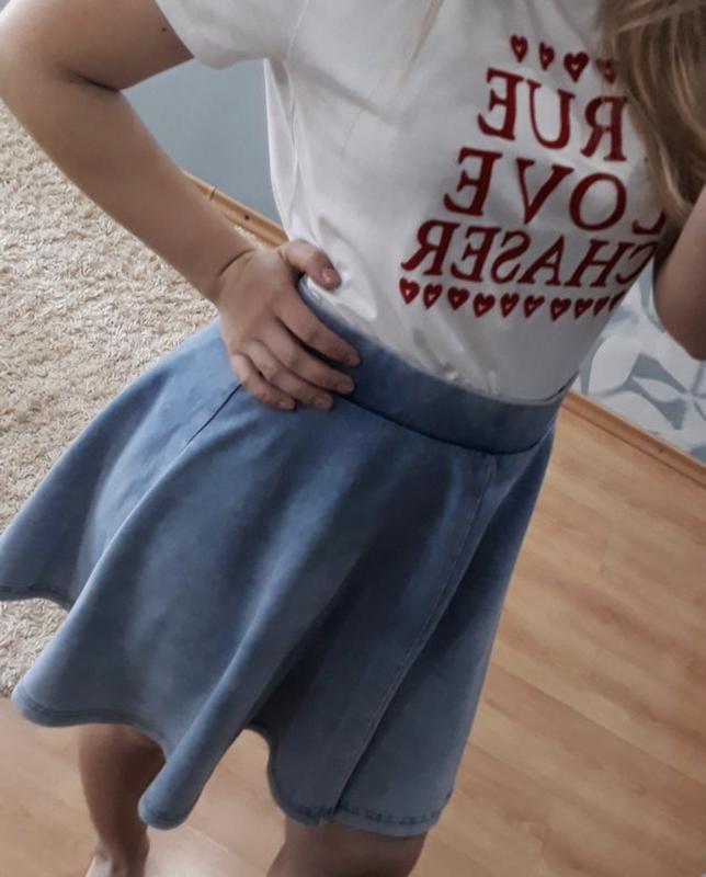 Спідниця носиться на високій талії відмінно підійде під футболки і кросівки колір схожий на варену джинс