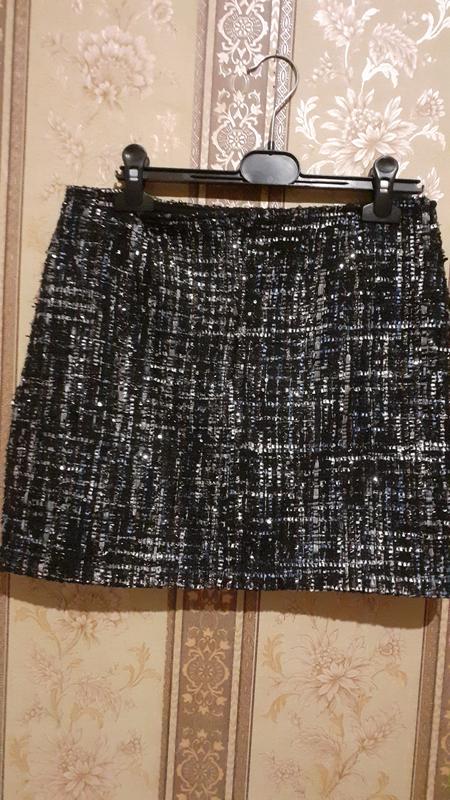 Теплая короткая юбка с серебристой блестящей нитью на подкладке.Размер написан L,но подойдет и на М(см.замеры).На мне посадка средняя,чуть ниже талии. Длина -38 Полуобхват талии-38 Полуобхват бедер-45 Цена 100 грн. Отправляю НП,УКРПОЧТОЙ. Смотрите мои объявления.