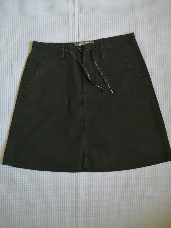 Юбка лен, цвет хаки, талия - 40см,есть кулиска можно стянуть, длина - 50см, ширина по бедрам-53 см.