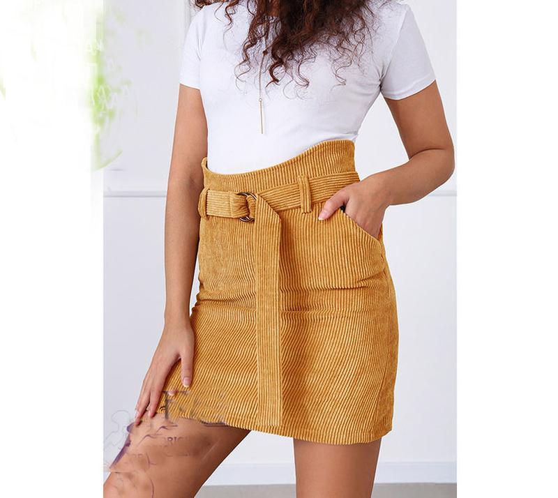 Повсякденний образ стане набагато цікавішим і свіжим, якщо у вас є вельветова спідниця міні. Яскрава новинка урізноманітнює звичний гардероб, надавши йому смачні стильні нотки. Перевага спідниці в тому, що вона чудово поєднується з футболками, світшотами і блузками. У підборі взуття теж не виникне проблем – міні спідницю можна поєднувати з чим завгодно. Але за останнім словом моди, найкраще з спідницею міні будуть виглядати мокасини, кросівки або кеди. Модна спідниця виготовлена з вельвету. Матеріал м'який і приємний на дотик, відрізняється фактурної текстурою з лицьового боку. Вироби з цієї тканини виглядають досить вигідно і стильно. Модель оригінального фасону має такі особливості дизайну: - довжина міні (до середини стегна); - завищена талія, зручна посадка; - два бічних кишені спереду; - шлевкі і знімний пояс.