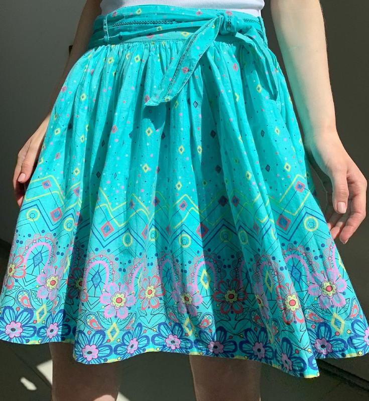 Юбка 🕊 Размер S ( пояс внутри регулируется резинкой, можно регулировать, так же регулируется поясом снаружи) 100% хлопок (и юбка, и подкладка) Индия 🇮🇳 ПО талии- 34 см Длина изделия- 43 см Состояние 9/10