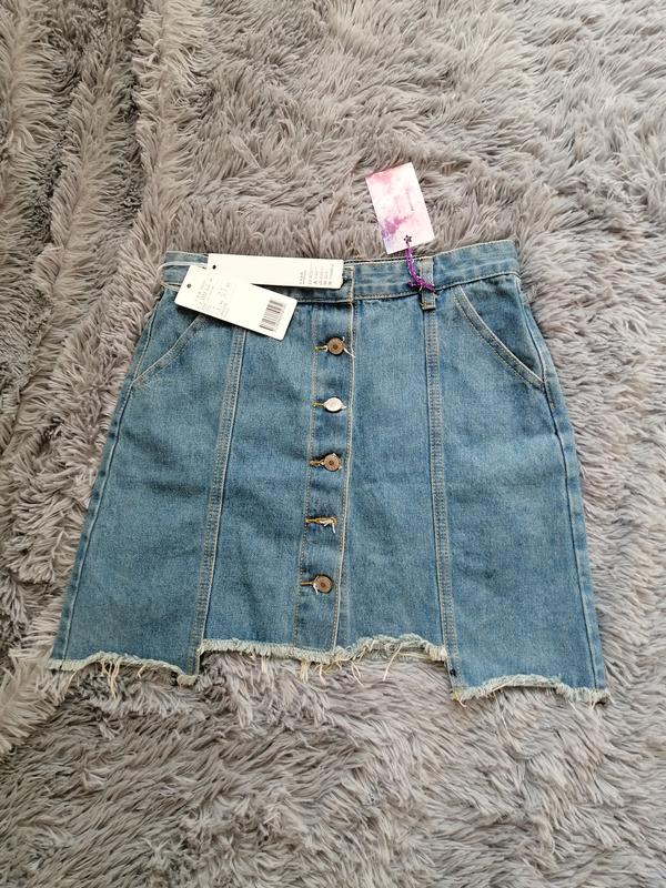 Джинсова спідниця дефект немає одного ґудзика пот 36 б 49 довжина 44