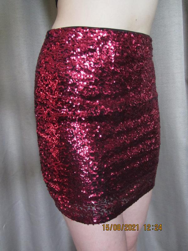Яскрава спідничка Н&М, розшита паєтками. Пояс - резинка. ОТ 38см. ОБ 46см. Ширина по низу 47см. Довжина 43см.