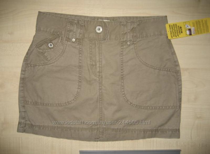 юбка горчичный джинс стрейч, фурнитура металл, талия низкая, р 36, кармашков 4