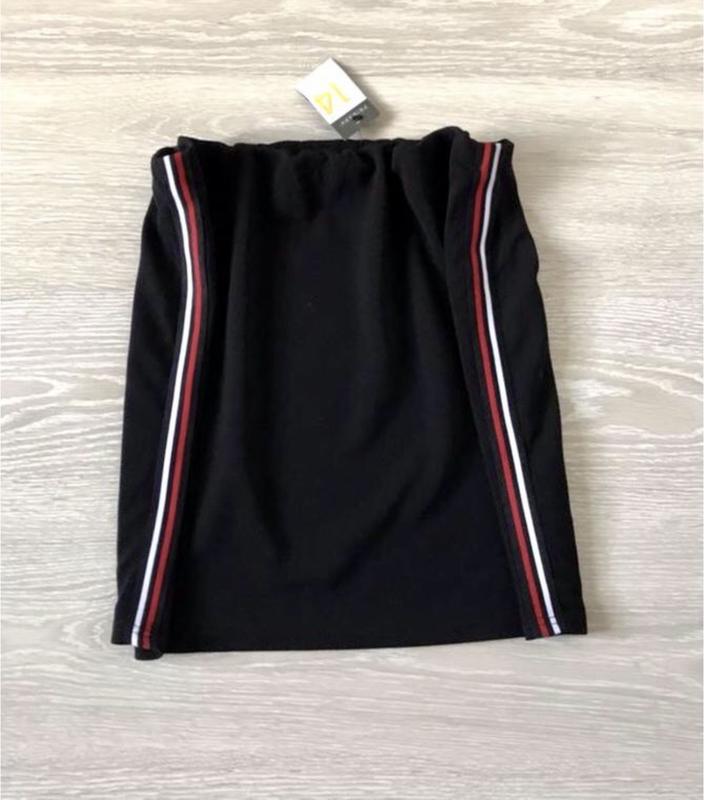 Нова класна спідничка Primark з лампасами розмір на бірці 14/42, іде на М. Довжина 40 см ПОТ 37-48 см (на резинці). ПОС 48 см тягнеться до 57 см .