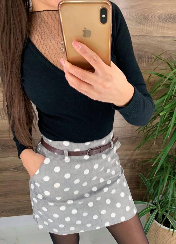 Юбка (Фабричный Китай) Люкс качество ткань вельвет подкладка-шортики пояс в комплекте размер 42, 44 Цвет серый , пудра