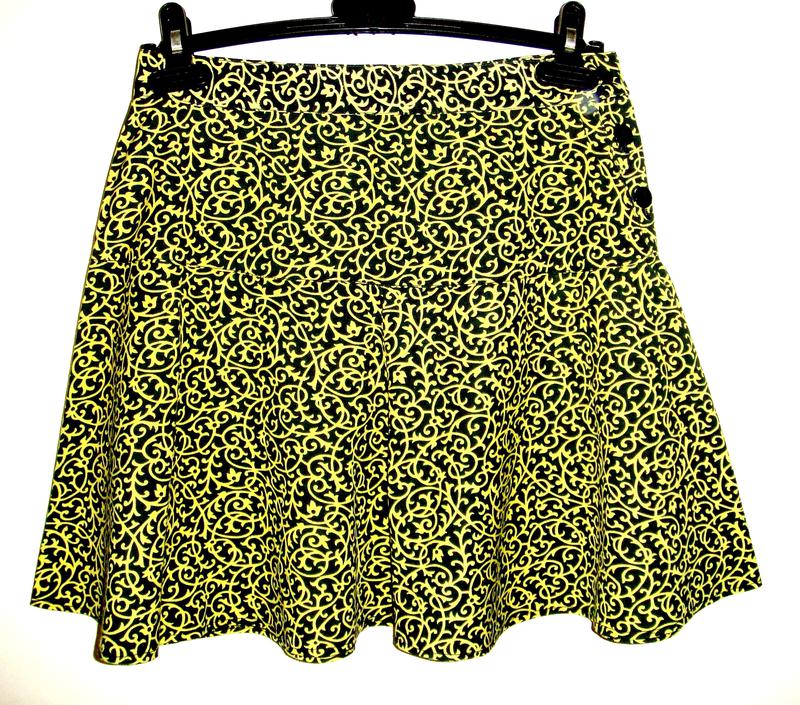 Выразительная симпатичная юбочка на кокетке, расширенная клиньями, чёрно-жёлтая, мини, женская, средней плотности хлопок - не тонкий. Бренд Joulie. Размер М. Застёжка пуговицы. В идеальном состоянии. Замеры: длина юбки 44см, пояс 70см, стегна 96см по шву кокетки, высота кокетки вместе с поясом 17см.