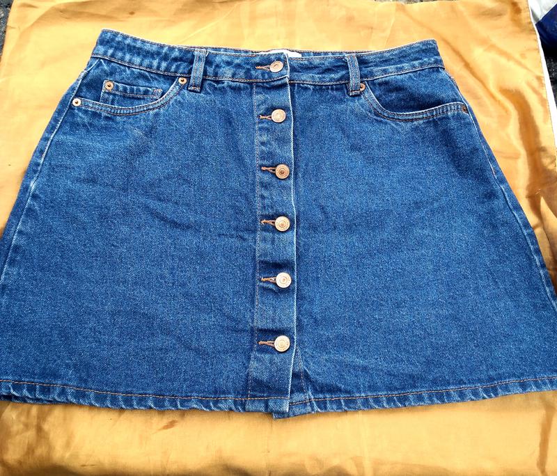 джинсовая юбка на пуговицах талия 98см бедра на 115 см длина 41 см