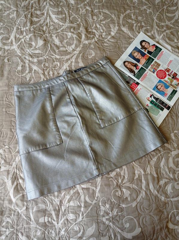 серебристая юбка из экокожы длина 39см пояс 38см поб 47 см