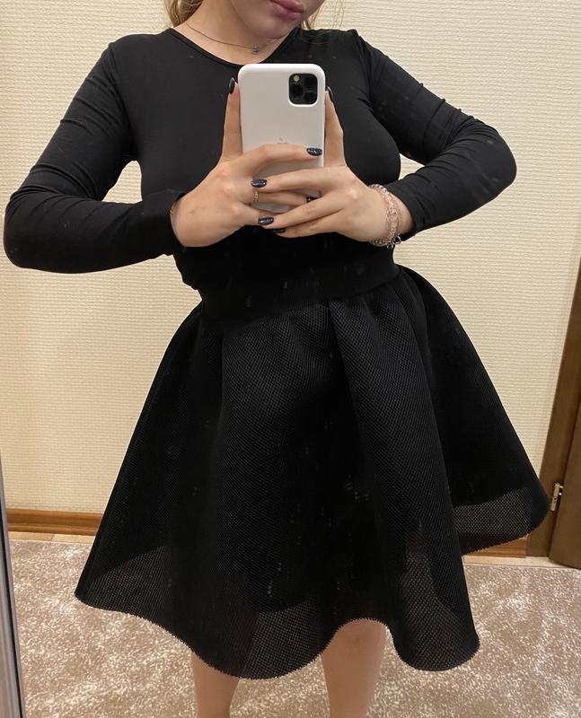 Черная стоячая пышная юбка. Не мнется. Размер универсальный - на резинке. Материал: неопрен соты + подклад.
