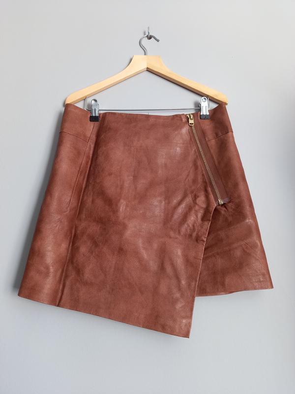 Спідниця в ідеальному стані, з шкірзаму, асиметричний крій . довжина 41см,клин -48см. по пояса 39см по бедер 49см