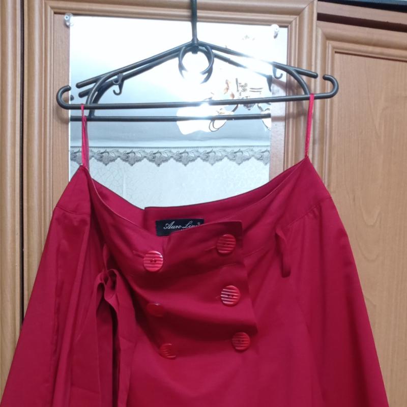 Юбка на запах, спереди и сзади по две складки,есть поясок.Замеры по запросу