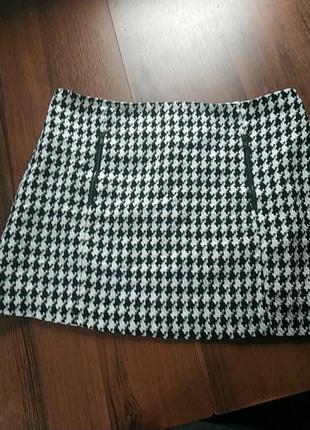 Спідничка в "гусячу лапку". Розмір L. Довжина 40 см. От - 80. Об - 100. Тканина не тягнеться.