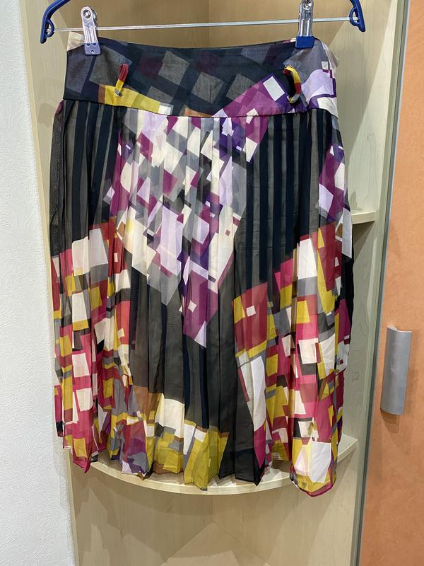 юбка с плиссировкой и бежевой подкладкой до середины колена
