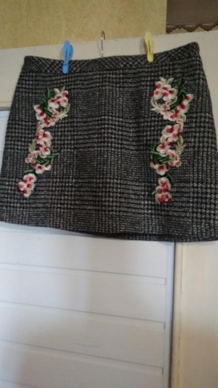 тепла спідниця не підійшов розмір. по бірці 16. заміри довжина 42,43 по талії 46 stegna 53, це все полуобєми. спідниця в ідеалі. тканина 65 полієстр 25 акрил 3 бавовна 2 коттон. фото бірки про склад тканини погано видно Відправка моментально