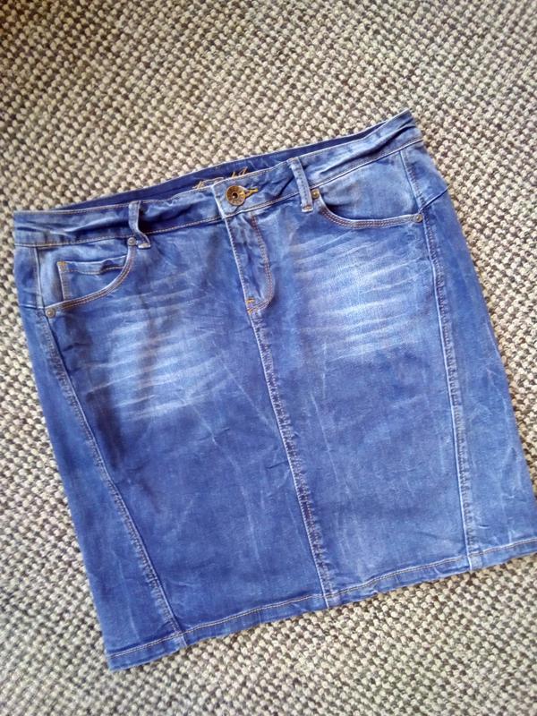 брендова джинсова спідничка стрейчева,в ідеальному стані, Піт 41-42, Побіди 48-50, довжина 44