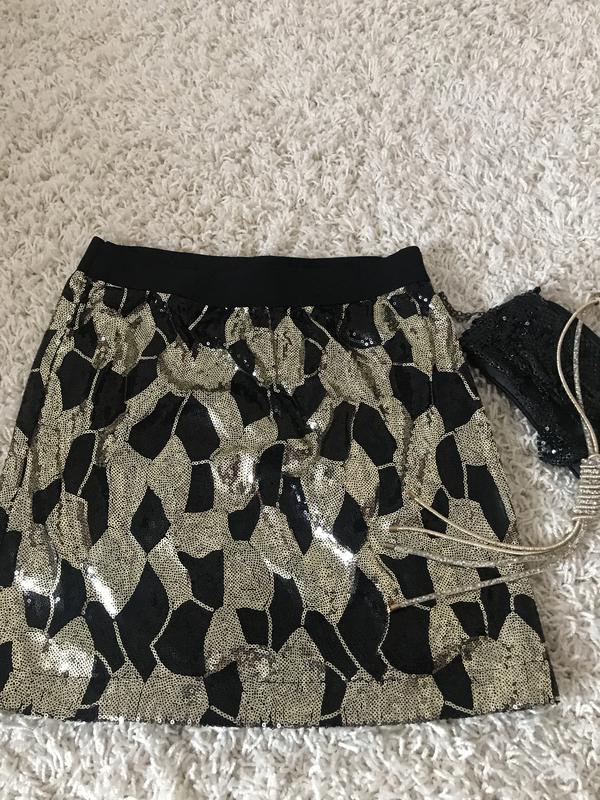 Нарядна спідничка в паєтки пояс на резинці, є підкладка. Розмір m/s пояс гарно тянеться.