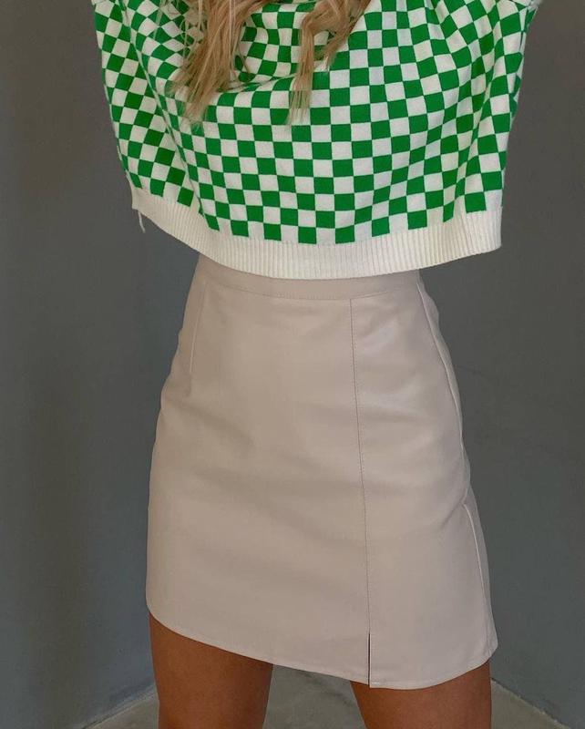 Юбка Ткань: Эко-кожа Цвет: бежевый Размеры: 42-44, 46-48 Модная мини-юбка с разрезом. Отличное качество, высокая посадка Made with Love