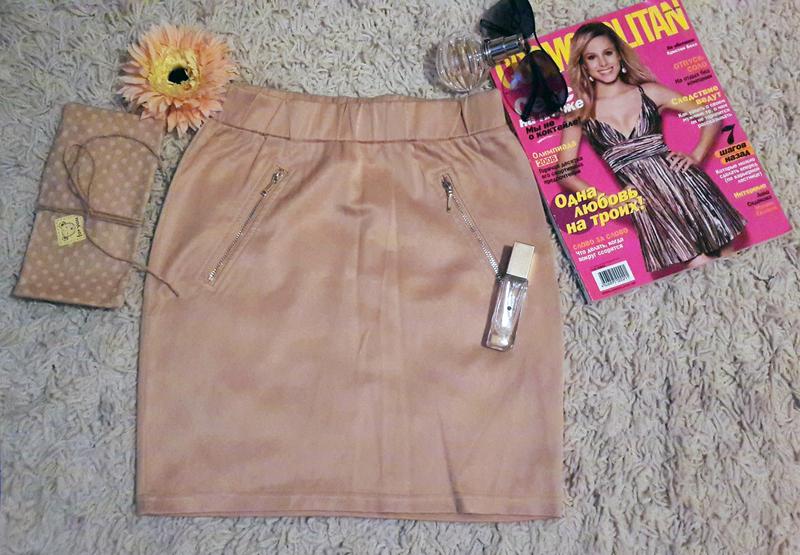 Атласная юбка. Цвет беж с золотистым переливом.по бокам, декоративные замочки.пояс на резинке. Размер: 34-36 (XS-S) ПО талии: 29 см ПО бедер: 38 см Длина: 41 см