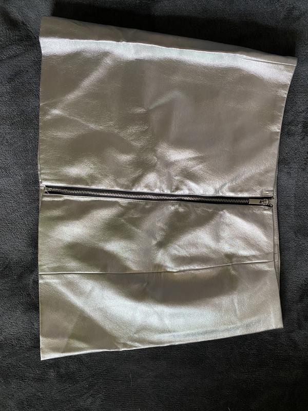 Мини юбка, серебристого цвета с застёжкой впереди. Размер S но пойдёт и на небольшую М.