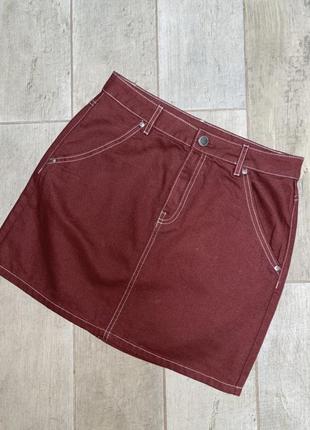 Стильна джинсова спідничка вишневого кольору актуального крою