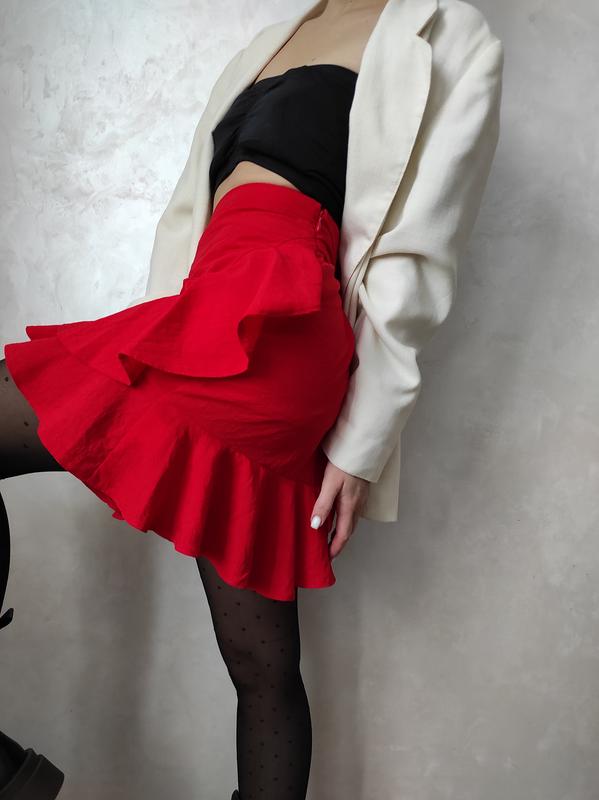 юбка міні з рюшкою,імітація назапах,позаду на завязках,можна регулювати розмір,збоку прихована змійка ▪️стан ідеальний ▪️розмір Л(40)
