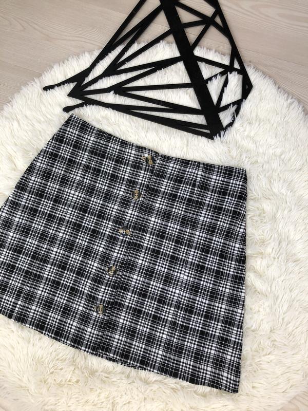 Стильная юбка мини Актуальная модель Принт клетка Декор пуговицы Новая с пломбой от бирки Замеры П.о.т-38 П.о.б-50 Длина-41