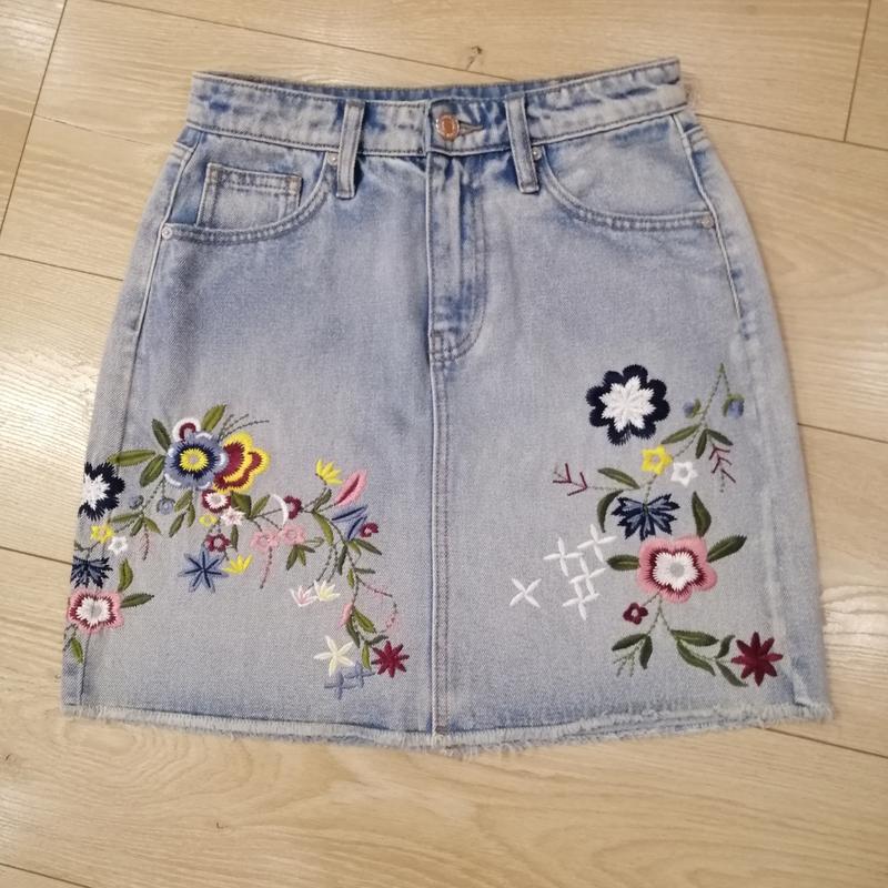 Спідниця катонова, нова, бірка зрізана. Спідниця декорована вишивкою, виглядає дуже стильно. Розмір 34, ПІТ 35 см, довжина 44.5 см