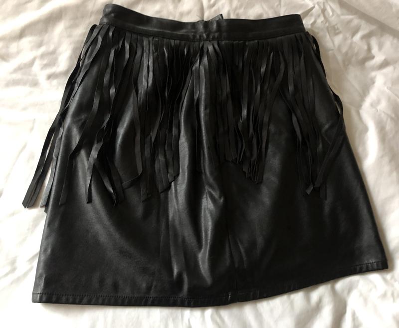 Шкіряна спідниця в ідеальному стані. Заміри: пояс 32 см, довжина 41 см