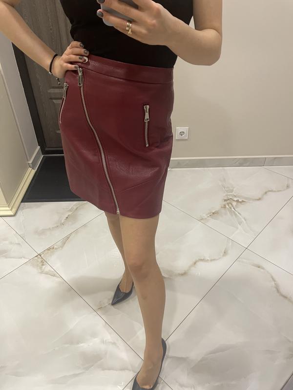 Кожаная юбка, бордового цвета