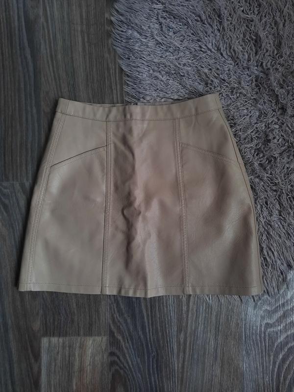 кожаная бежевая юбка new look