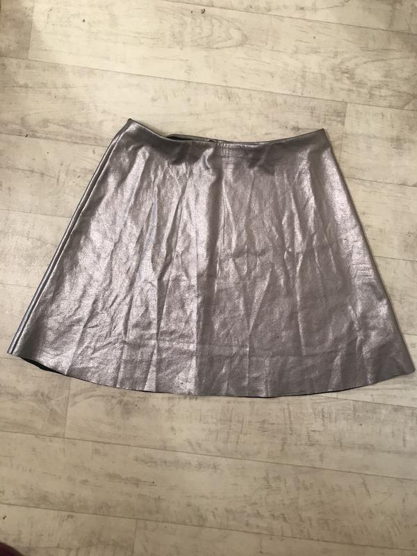 Классная юбка серебро , цвет на фото не передаёт в реале под серебро. Размер M большемерит, сядет на L есть мелкие зацепки , сзади юбки и есть спереди внизу на 2 фото, в носке не видно.Замеры: длина 42 талия 35 бедра 52 тянется , в целом хорошее состояние вещи..Девочки,забирайте! Отправлю укр или новой почтой после оплаты на карту ПБ