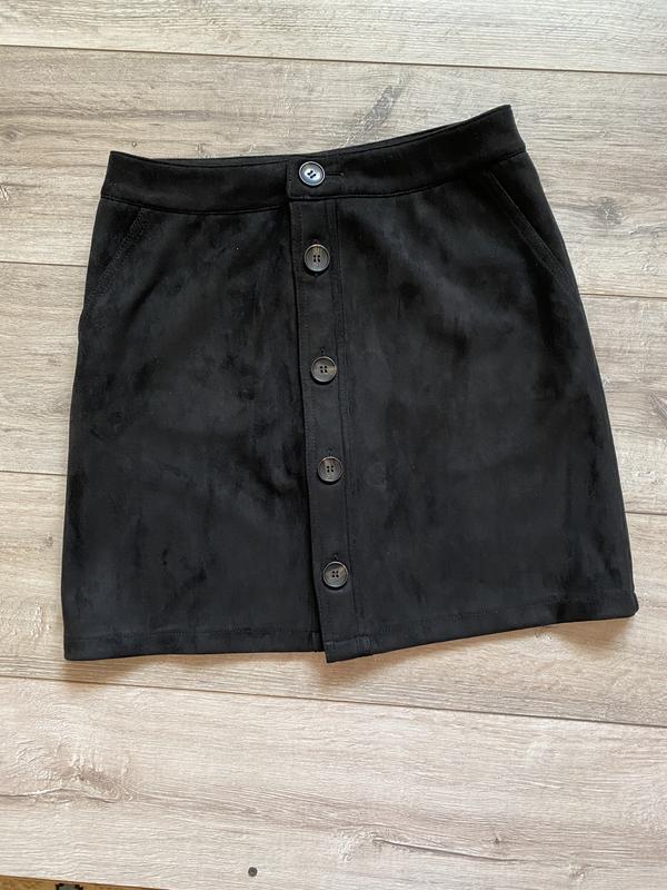 Юбка черного цвета на пуговицах спереди, сзади карманы. Под замш