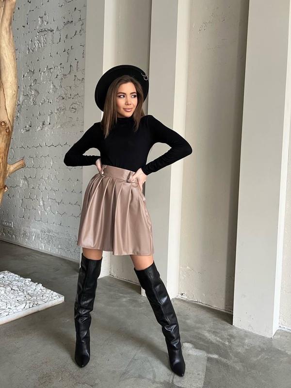 Кожаная юбка арт. mb. 030 Цена 530 грн Ткань: качественная эко кожа Размер: 42-44, 46-48 Цвет: бежевый, чёрный Юбка плиссе идеальной длины и посадки. Самые универсальные и базовые цвета. Прекрасно подчеркнёт ножки и талию.