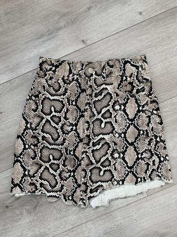 Юбка под актуальный змеиный принт. Джинс. Не обработанный край, сзади кармашки. Плотная
