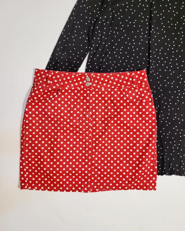 ❤️джинсовая юбка в горох, карманы, не тянется ☑️ Размер- 14 Пояс 88, поб 54, длина 47 ☑️ Бренд- Tu ☑️ Состояние- идеальное Фото на теле не делаю!!!