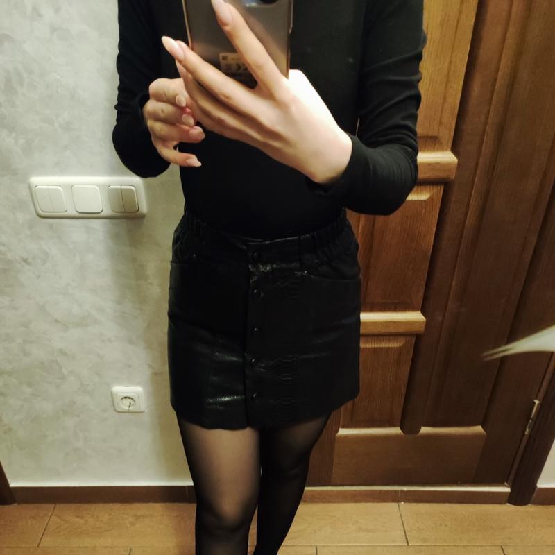 Шкіряна спідниця від BERSHKA розмір xs. Довжина 36 см, ширина 32 см, посередині замочок розстібається. Стан новий, немає жодних ушкоджень.