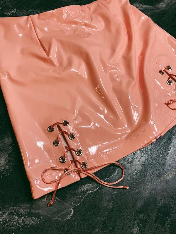 Юбка лак на шнуровке, эластичный материал, сзади молния, выбор цвета