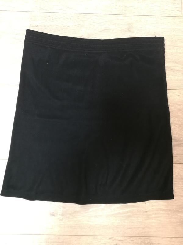 Черная юбка в рубчик на резинке. Тянется. Размеры на фото.