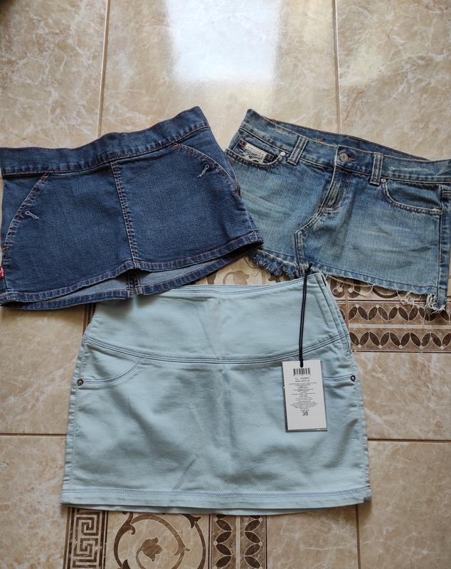 Джинсовая юбка новая Colins. Размер : 38. Сидит на фигуре отлично, за счёт широкого пояса скрывает животик. В наличии ещё две джинсовые юбки, размера XS. Смотрите замеры.