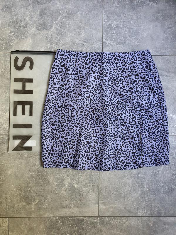 Спідниця бузкового кольору з леопрадовим прінтом чорного кольору. Середньої щільності. Без підкладки. Літній фасон трапеція, без поясу, позаду має скриту блискавку. Попереду має невеличкий розріз. Заміри: Довжина виробу - 40см ПОТ - 33см ПОБ - 42см ПО внизу 45см. Плечі - 39см.. Довжина розрізу - 13см. Склад: 100% поліестр Оплата на карту Приват банку і тільки доставка Новою поштою. Після покупки товар поверненню не підлягає.
